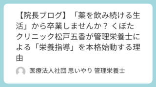 【院長ブログ】「薬を飲み続ける生活」から卒業しませんか? くぼたクリニック松戸五香が管理栄養士による「栄養指導」を本格始動する理由