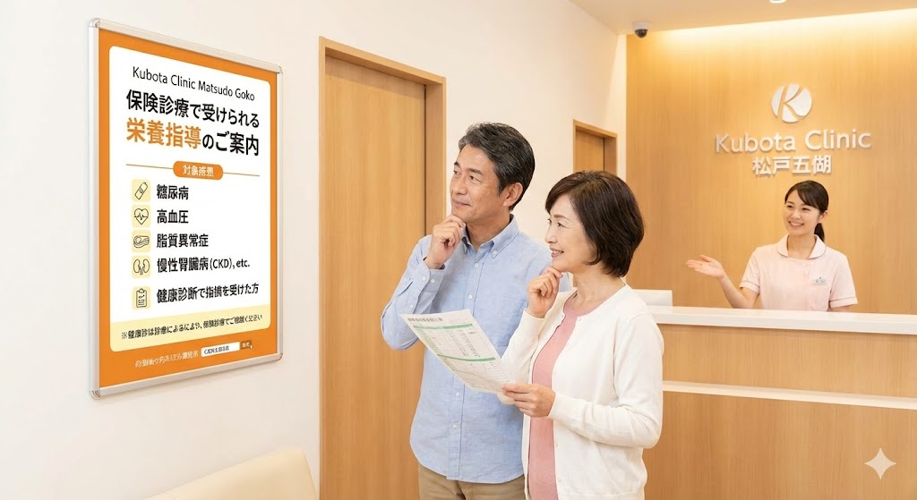 当院の栄養指導は、**健康保険が適用される「保険診療」**の範囲内で行っております。(※現在、自費診療での栄養指導は行っておりません)