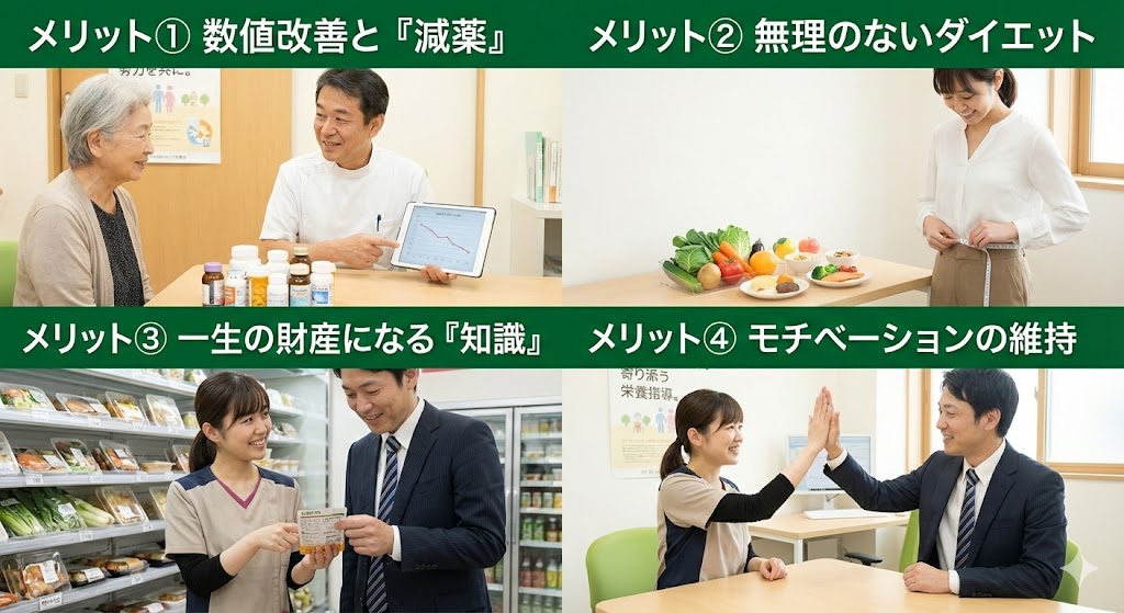 当院で栄養指導を受けていただくことで、皆様には以下のようなメリットがあります。