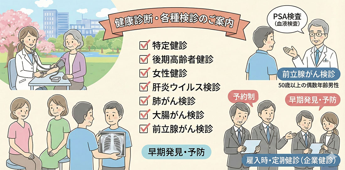 ※会社や自治体の健康診断などで「異常」を指摘された方の再検査・診察にも応じます。
