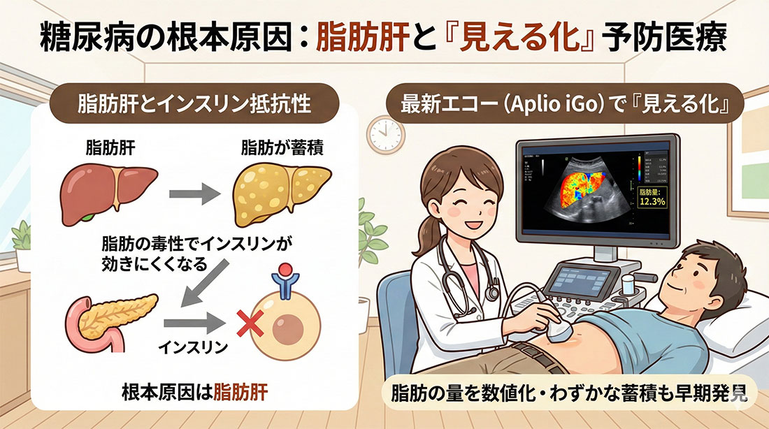 【当院の重点】糖尿病の「根本原因」に迫る:脂肪肝とインスリン抵抗性